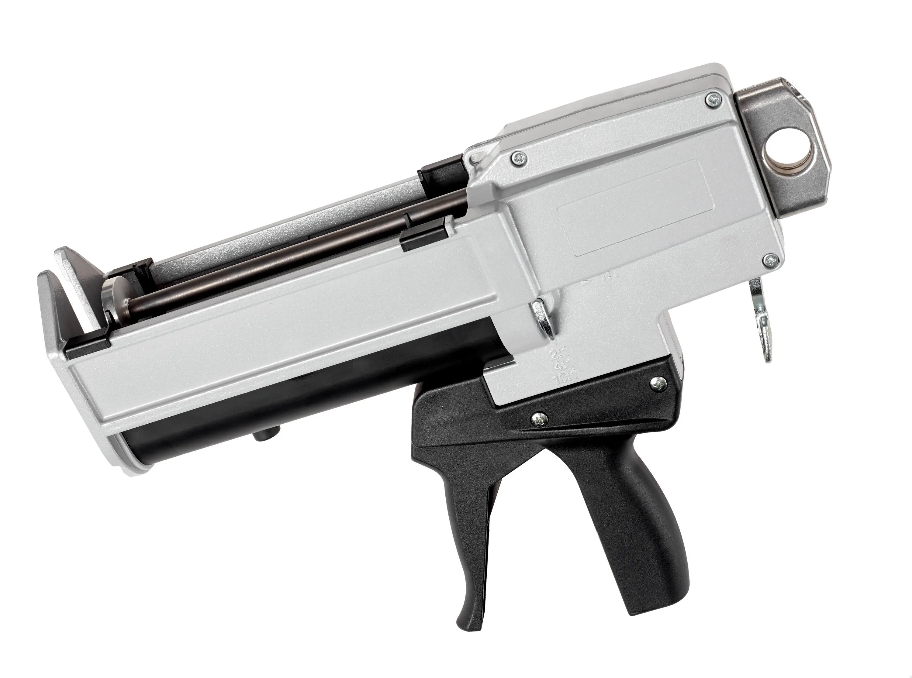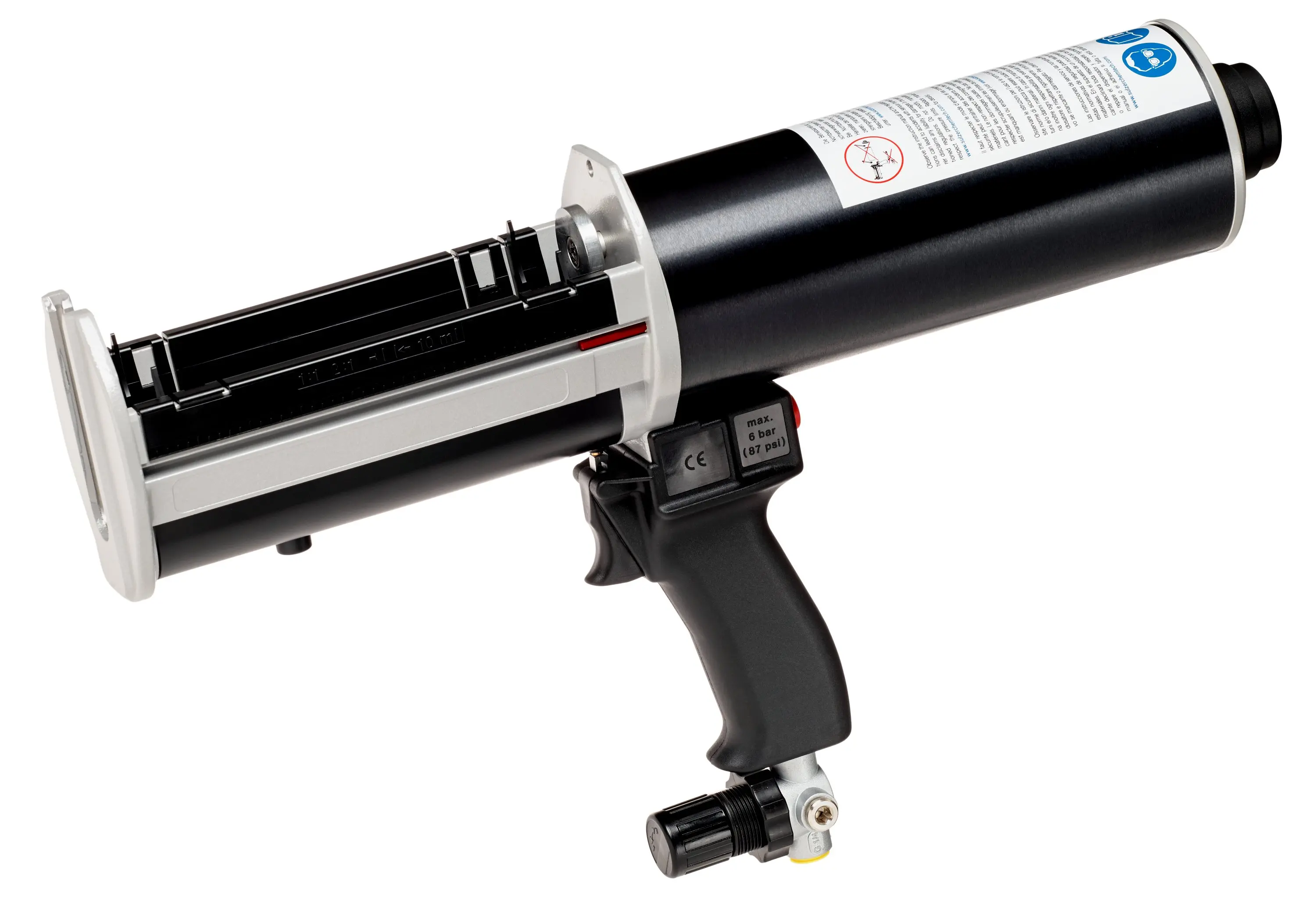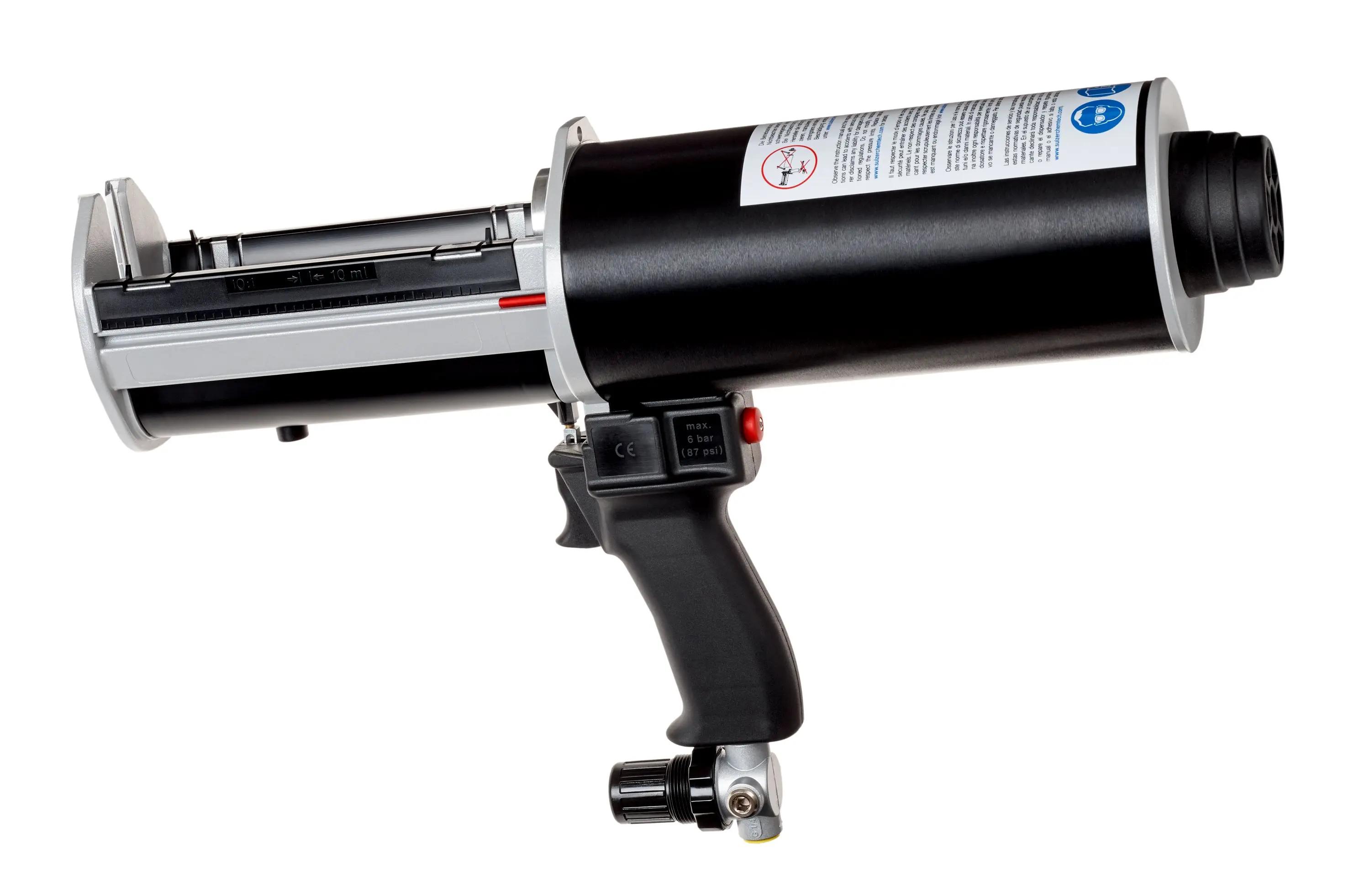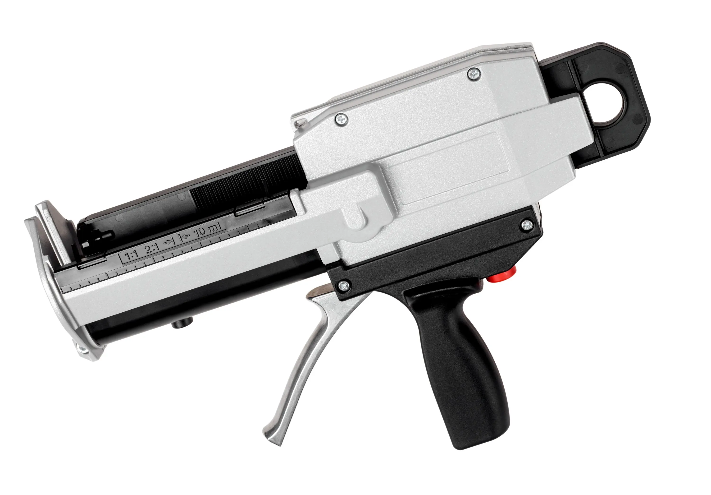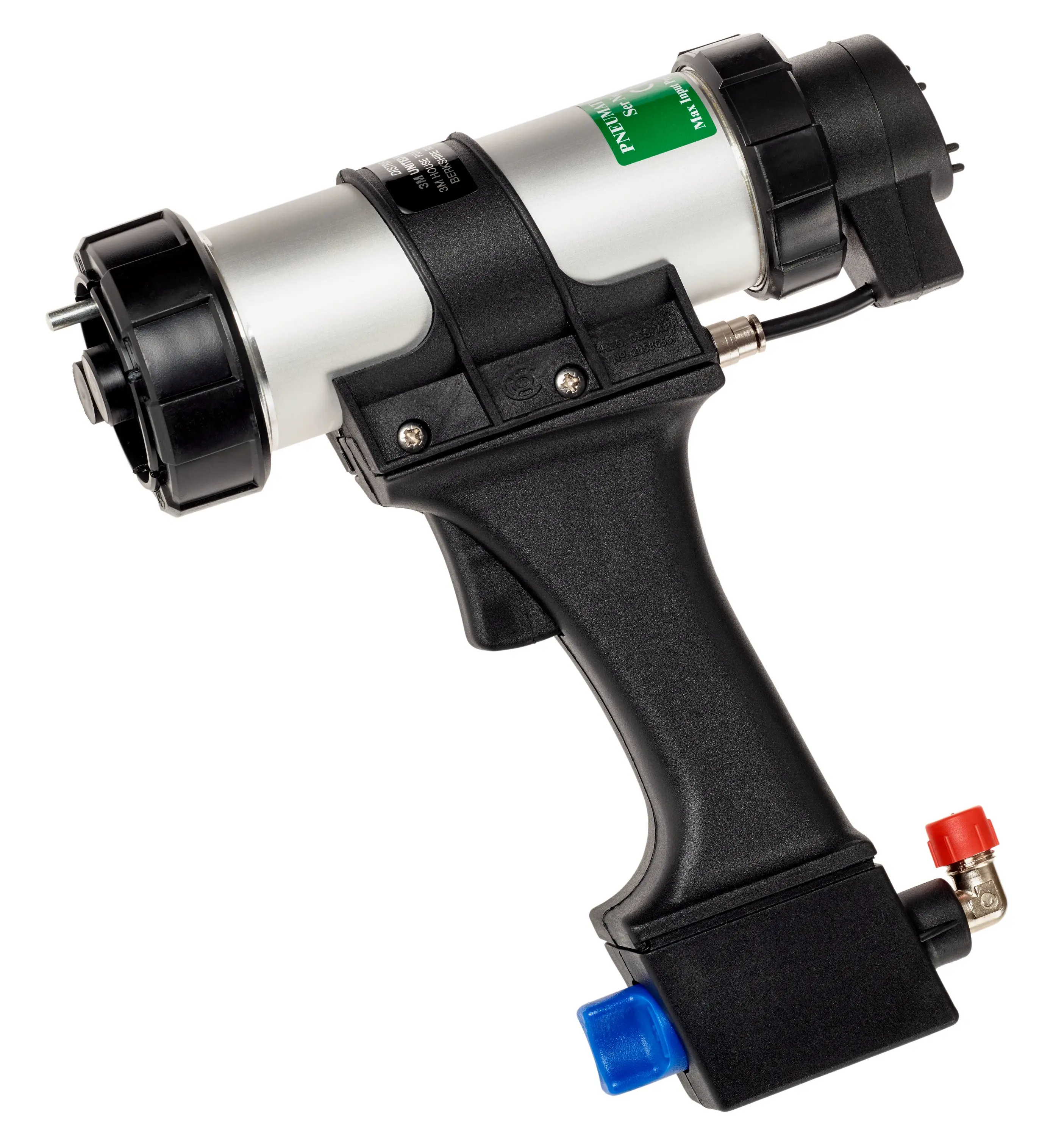 Mit dem Druckluftgerät können die 265 ml Kartuschen der 3M™ Scotch-Weld™ Klebstoffe DP 8005 und DP 8010 verarbeitet werden. Die Pistole ist für das Mischungsverhältnis 10:1 ausgelegt.