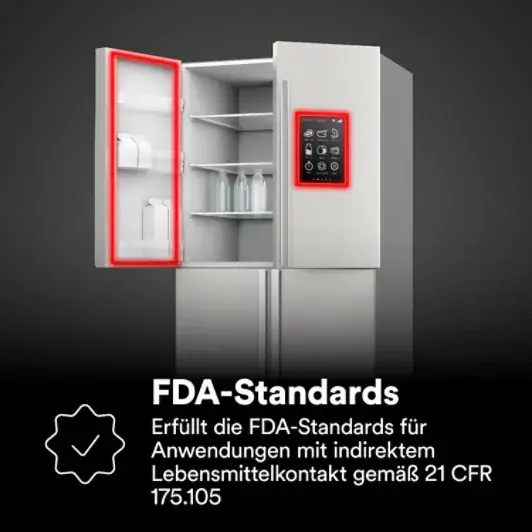 Die geruchsarmen Klebebänder der 3M™ VHB™ LVO-Reihe ermöglichen anspruchsvolle Klebeverbindungen, bei denen niedrige VOC-Emissionen gefordert sind. Durch die FDA-Konformität sind Anwendungen mit indirektem Lebensmittelkontakt gemäß 21 CFR 175.105 möglich.